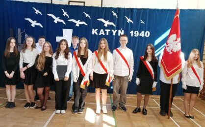 Podczas uroczystego apelu uczniowie klas: 7b i 8a przybliżyli swoim koleżankom i kolegom historię dokonania zbrodni katyńskiej, następnie przeszliśmy na plac apelowy, aby odsłonić tablicę upamiętniającą Porucznika Zdzisława Ciosińskiego. Na Gali w Miejskim Domu Kultury pani Dyrektor Małgorzata Kalinka odebrała dla naszej szkoły Certyfikat Dębu Pamięci.