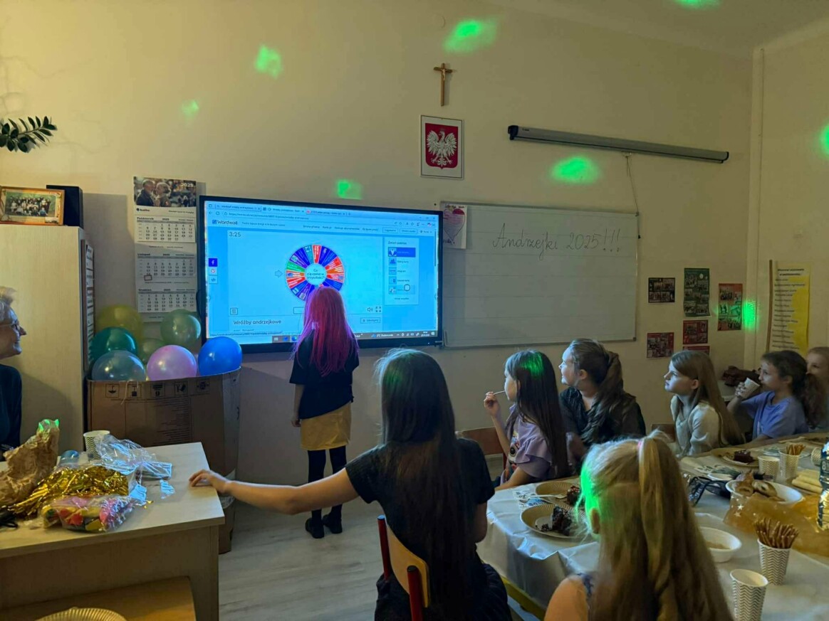 W każdej klasie dzieci zorganizowały swoje małe święto pełne wróżb, zabaw i uśmiechów. Na stolikach pojawiły się serduszka z imionami, kubeczki z niespodzianką, losy przepowiadające przyszłość oraz wosk, z którego uczniowie z ciekawością odczytywali kształty.