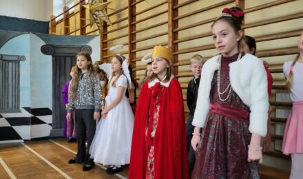 Dnia 19 grudnia 2025 roku w naszej szkole odbyły się tradycyjne jasełka bożonarodzeniowe, przygotowane przez uczniów klasy III a. Uroczystość miała miejsce w sali gimnastycznej, która została pięknie udekorowana świątecznymi ozdobami, choinką oraz symbolami nawiązującymi do narodzin Jezusa.