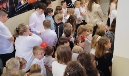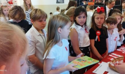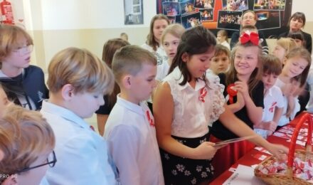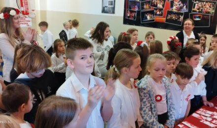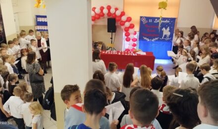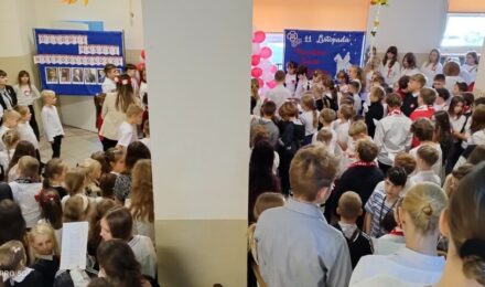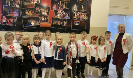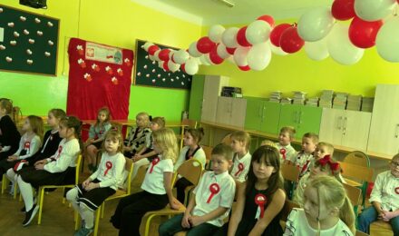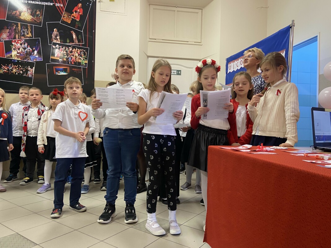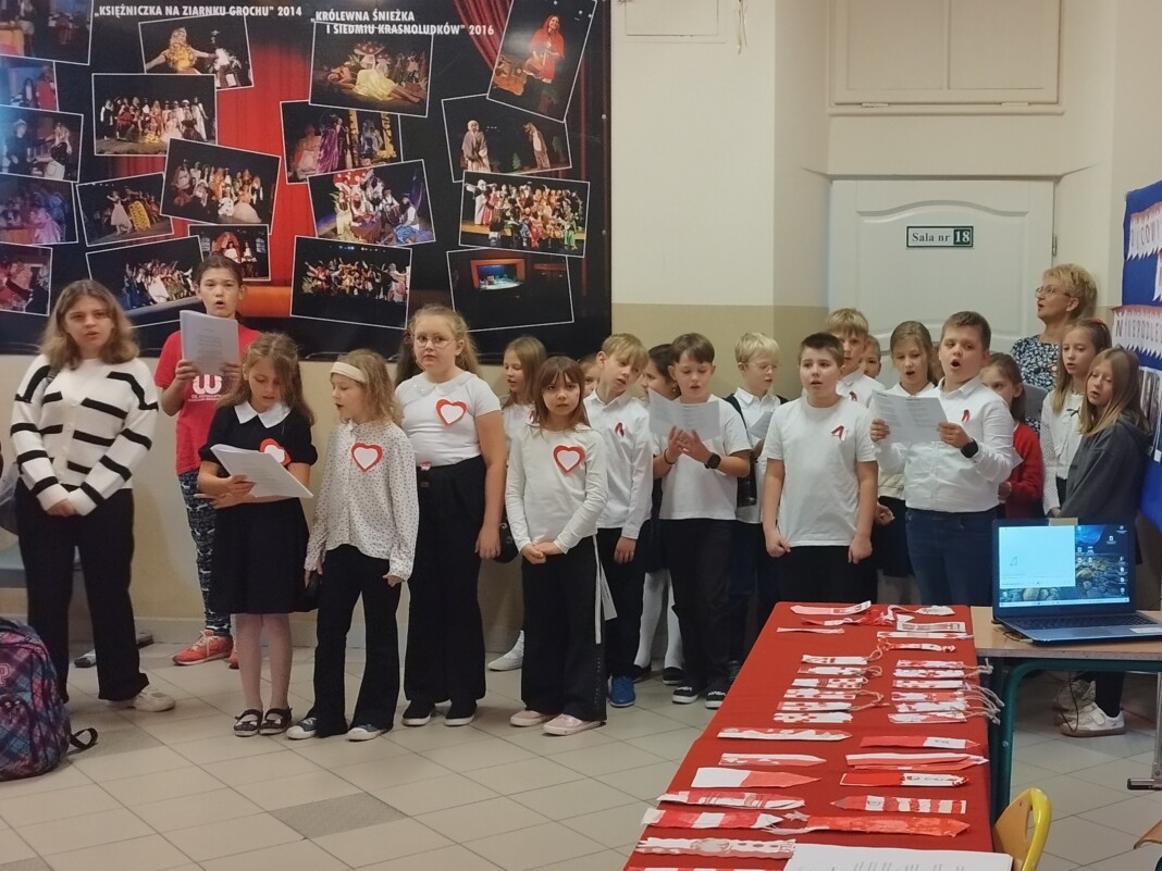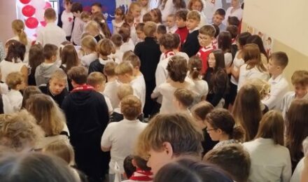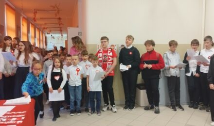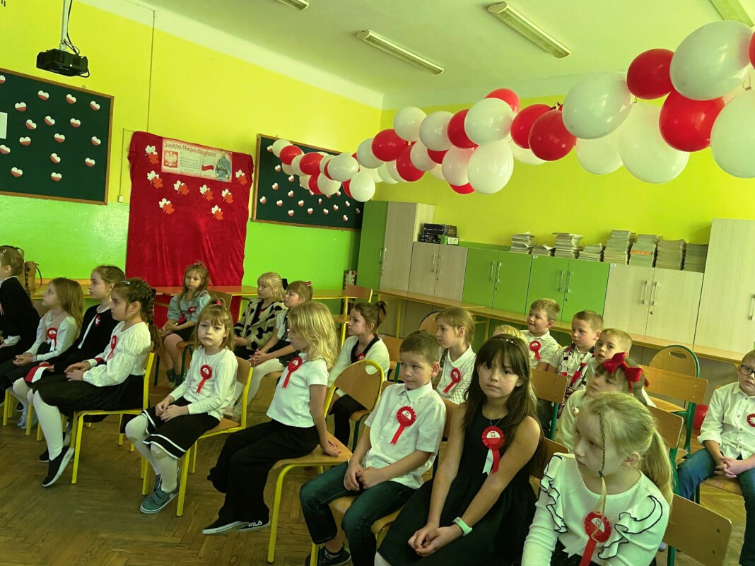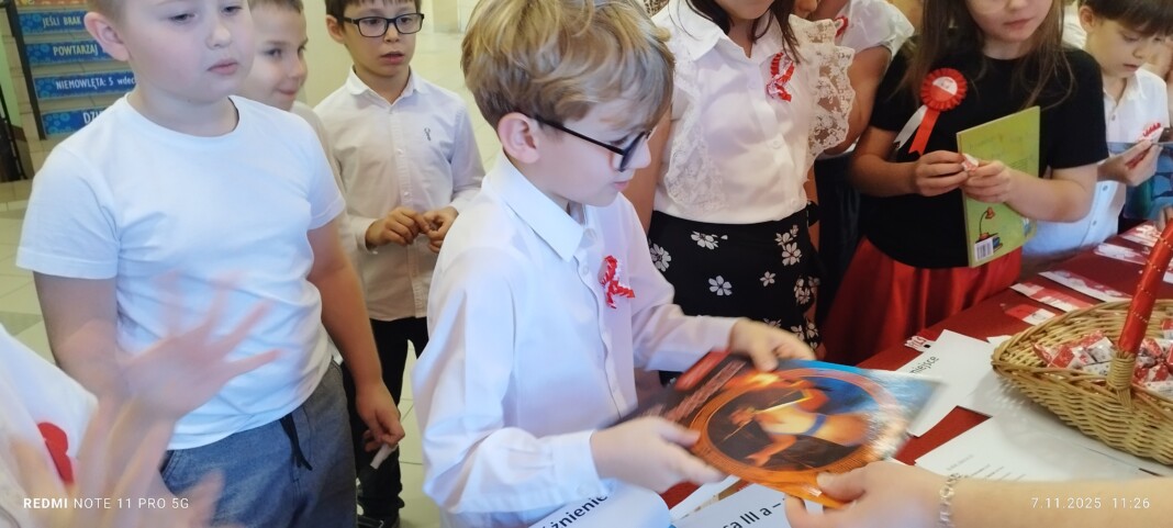 7 listopada 2025 roku świętowaliśmy 107 rocznicę Odzyskania Niepodległości przez Polskę. Nasze najpiękniejsze święto narodowe nasza szkolna społeczność spędziła wesoło i radośnie. Od wczesnych godzin trwał happening „Dla Ciebie, Polsko!”. Uczniowie oglądali filmy o tematyce związanej z odzyskaniem niepodległości, trwały konkursy, zabawy i pogadanki. Na każdej przerwie gromadzili się chętni do śpiewania pieśni niepodległościowych. O godzinie 11.00 zebraliśmy się, aby wspólnie zaśpiewać nasz hymn narodowy w ramach akcji „Szkoła do Hymnu”. Wsłuchani w słowa piosenki Marka Grechuty „Ojczyzna” oczekiwaliśmy na godzinę 11.11.. Pięknie i donośnie zabrzmiał „Mazurek Dąbrowskiego” a po nim Rota Marii Konopnickiej.