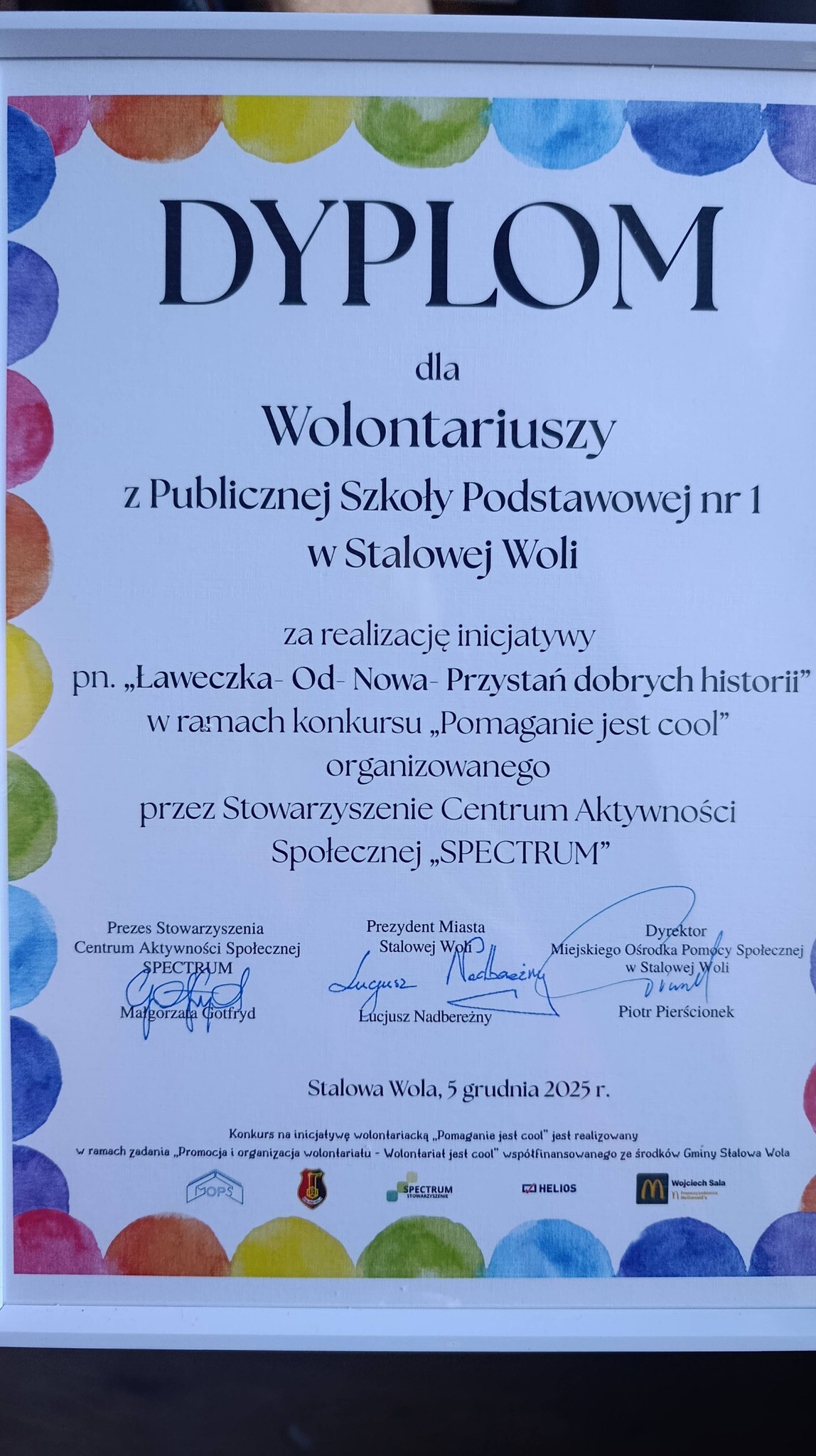 5 grudnia 2025 roki, w Światowym Dniu Wolontariatu nasi uczniowie klas ósmych wzięli udział w wyjątkowej Gali zorganizowanej w MBP Stalowa Wola przez Stowarzyszenie Spectrum oraz Miejski Ośrodek Pomocy Społecznej w Stalowej Woli . Podczas wydarzenia zaprezentowane zostały projekty zgłoszone do konkursu na inicjatywę wolontariacką pt. “Pomaganie jest cool” – a my z dumą informujemy, że aż dwa projekty z naszej szkoły zostały zakwalifikowane i otrzymały środki na realizację!
