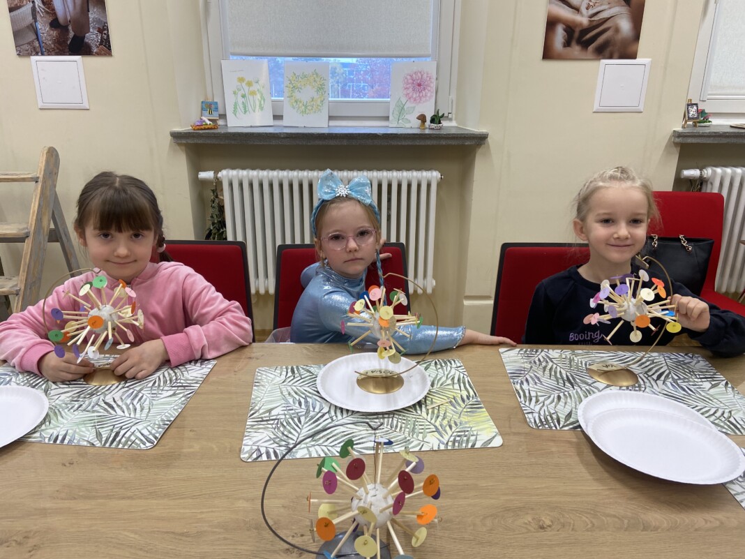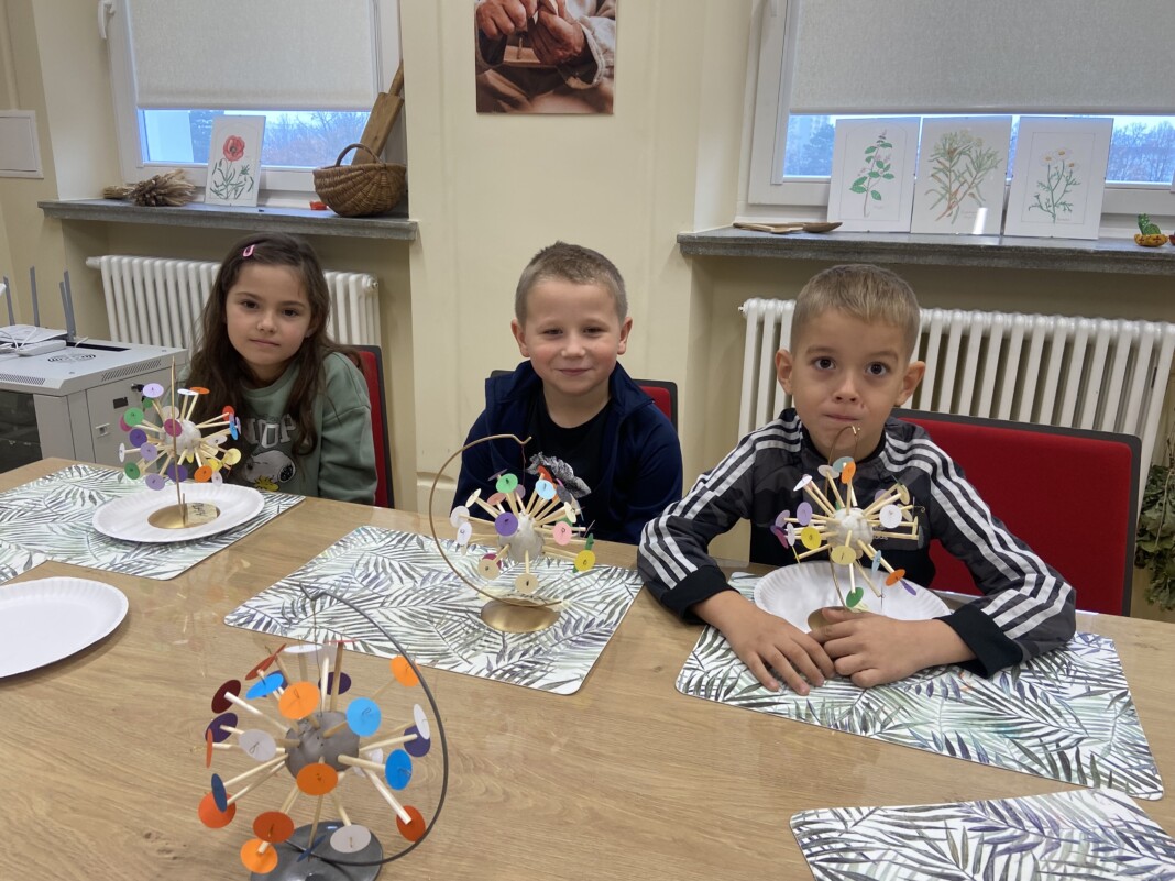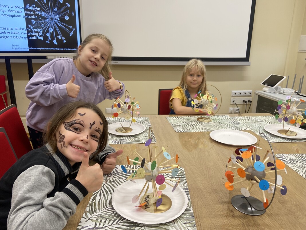 6 listopada nasi pierwszoklasiści brali udział w ciekawych warsztatach pt. „Nie taki pająk straszny – bożonarodzeniowe ozdoby ze słomy”. Organizatorem warsztatów był Miejski Dom Kultury w Stalowej Woli. Dzieci z chęcią poznały dawne zwyczaje bożonarodzeniowe oraz własnoręcznie wykonały ozdoby tzw. pająki kuliste. Zajęcia te przysporzyły Nam wiele radości, wyposażyły w cenną wiedzę oraz rozbudziły ciekawość związaną z ludowymi zwyczajami. Swoje wykonane pająki dzieci zabrały do domu, gdzie na pewno z radością ozdobią nimi bożonarodzeniowe stoły.