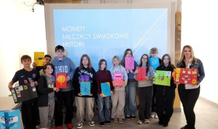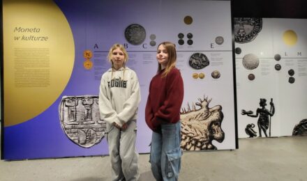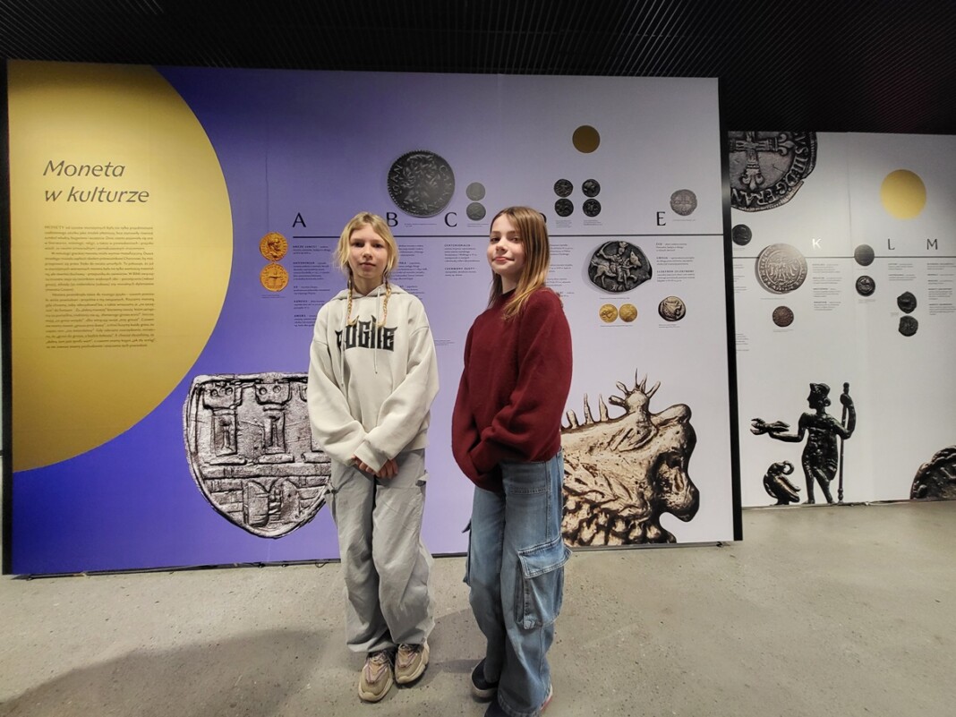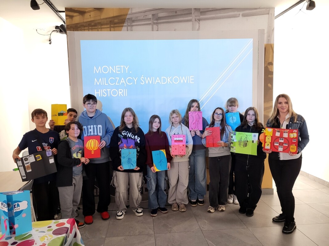 Następnie klasa zwiedziła wystawę czasową „Monety – Milczący Świadkowie Historii”, prezentującą bogaty zbiór numizmatów z różnych epok. Uczniowie mieli okazję poznać historię pieniądza oraz zobaczyć, w jaki sposób monety mogą opowiadać dzieje państw, władców i narodów.