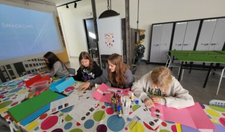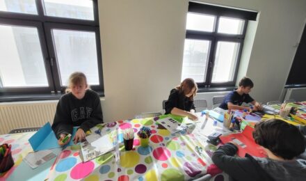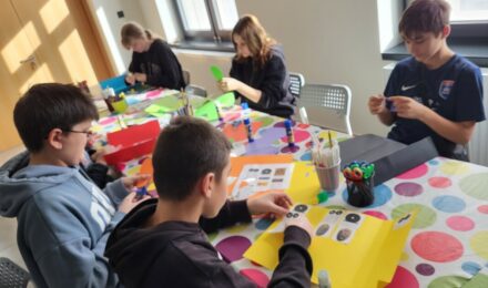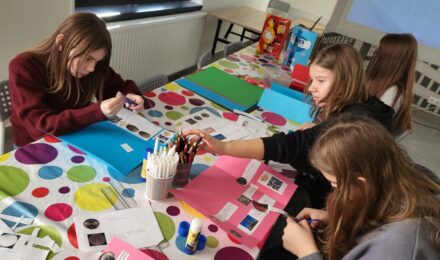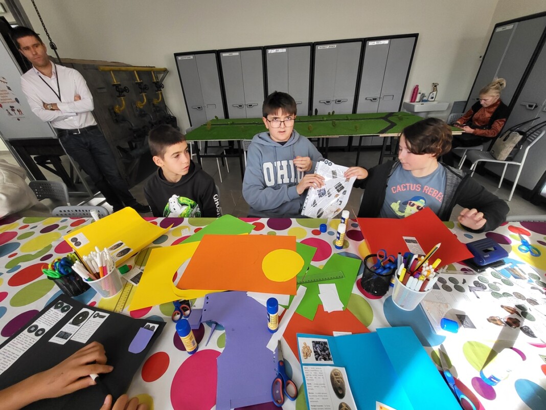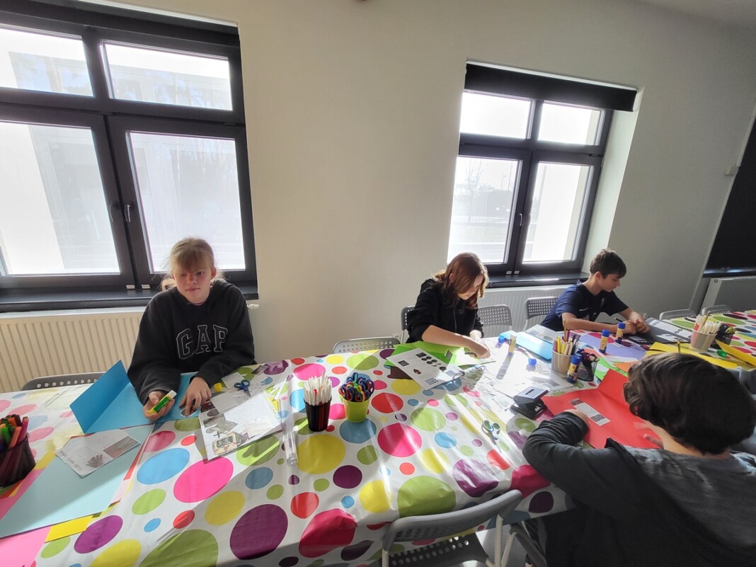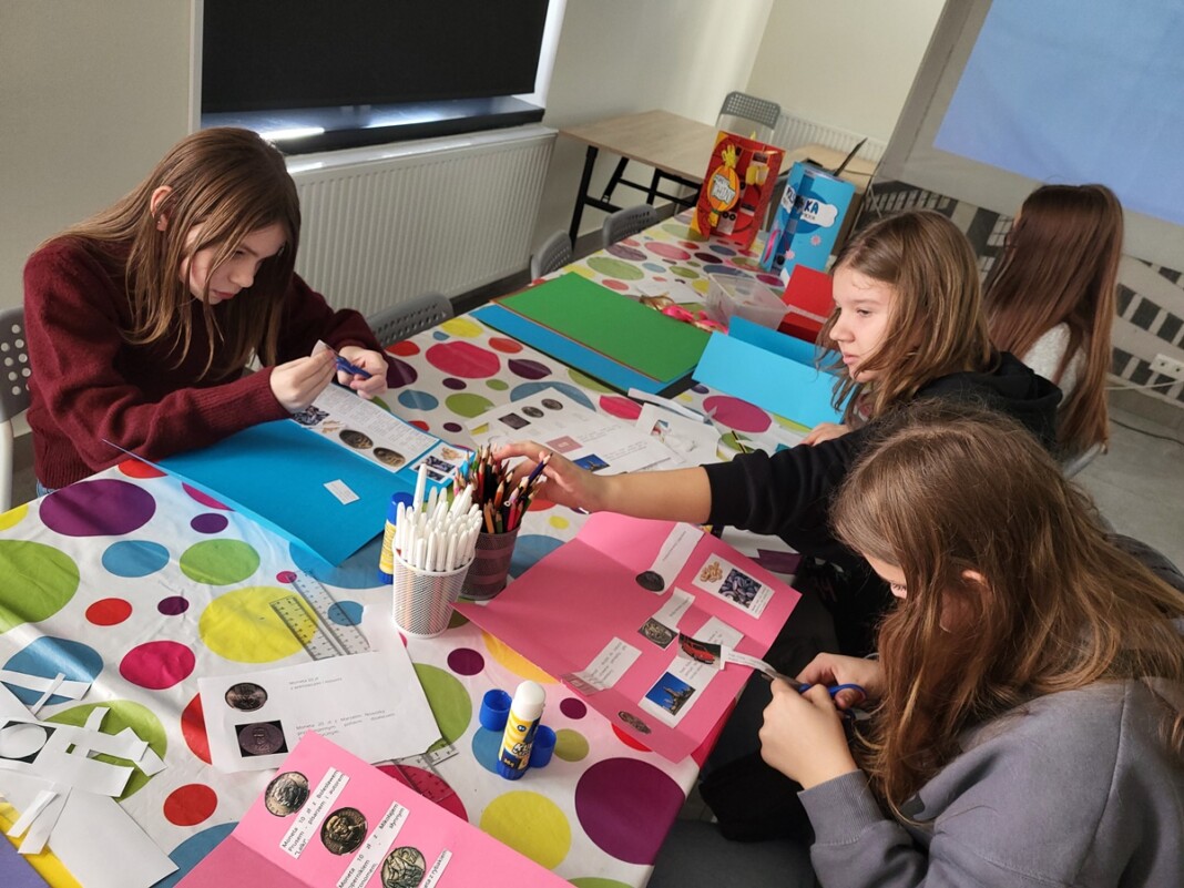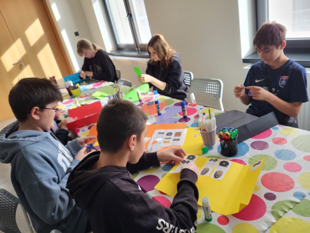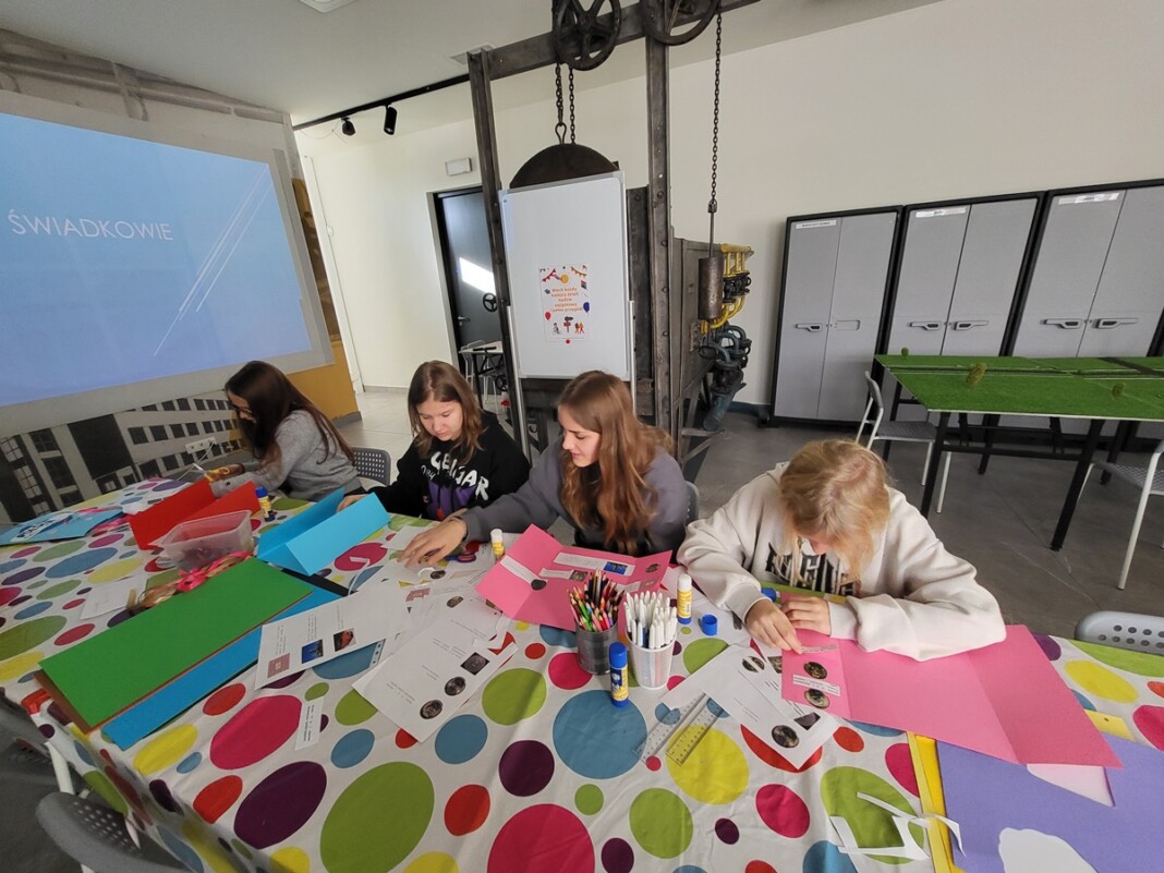 Po części zwiedzania odbyły się warsztaty edukacyjne, podczas których uczestnicy wykonali własne lapbooki związane z tematyką zwiedzanych wystaw. Zadanie to okazało się świetną okazją do kreatywnej pracy, utrwalenia zdobytej wiedzy oraz rozwijania umiejętności plastycznych.