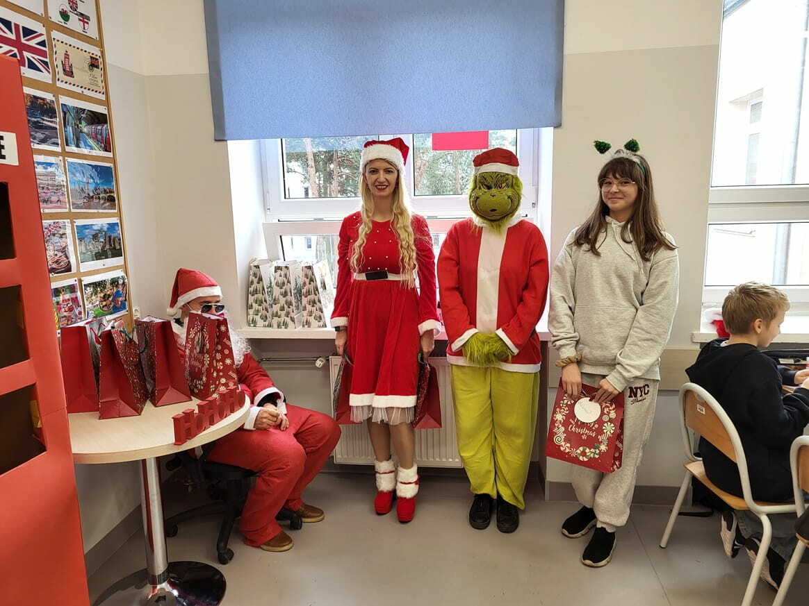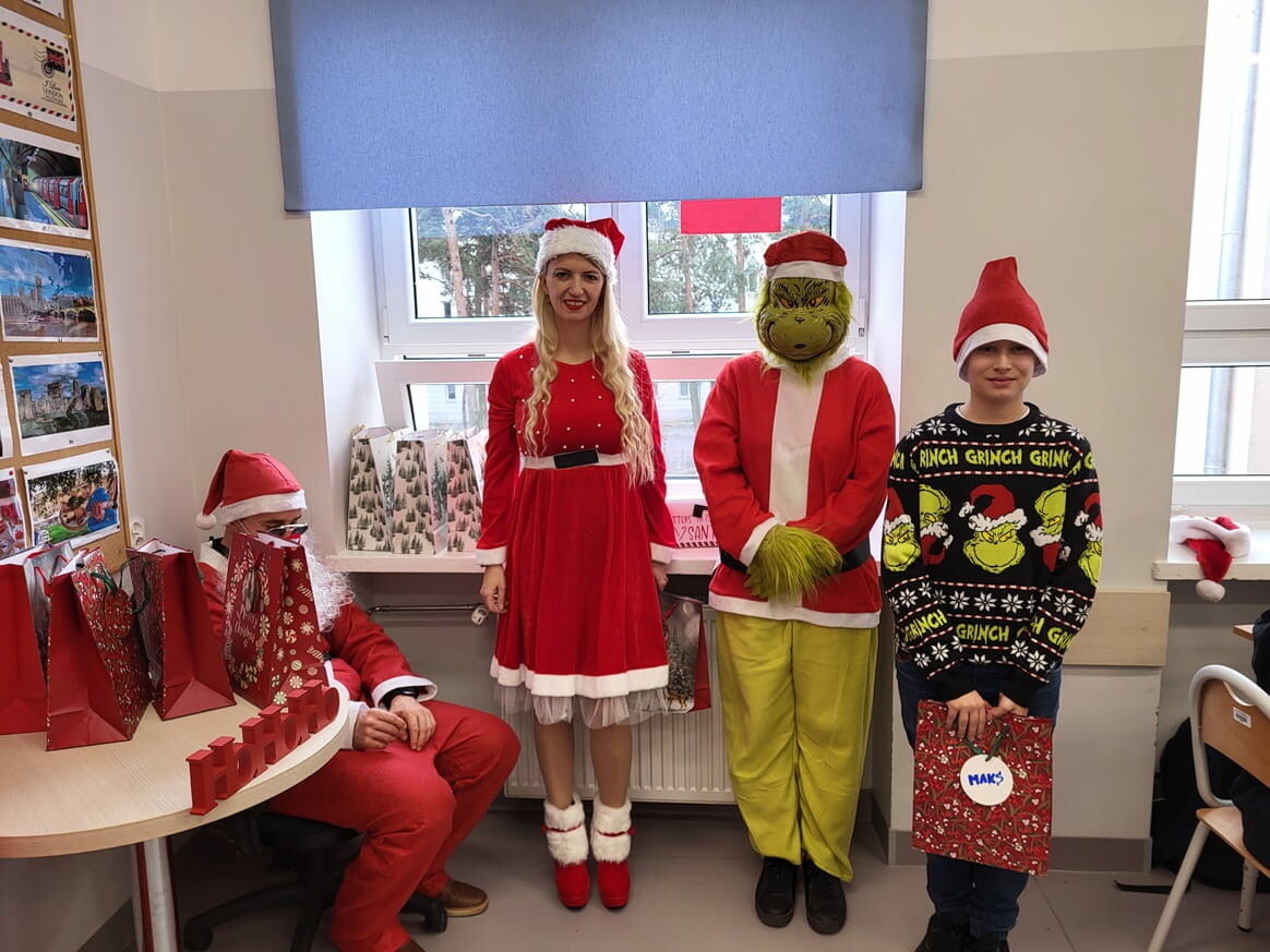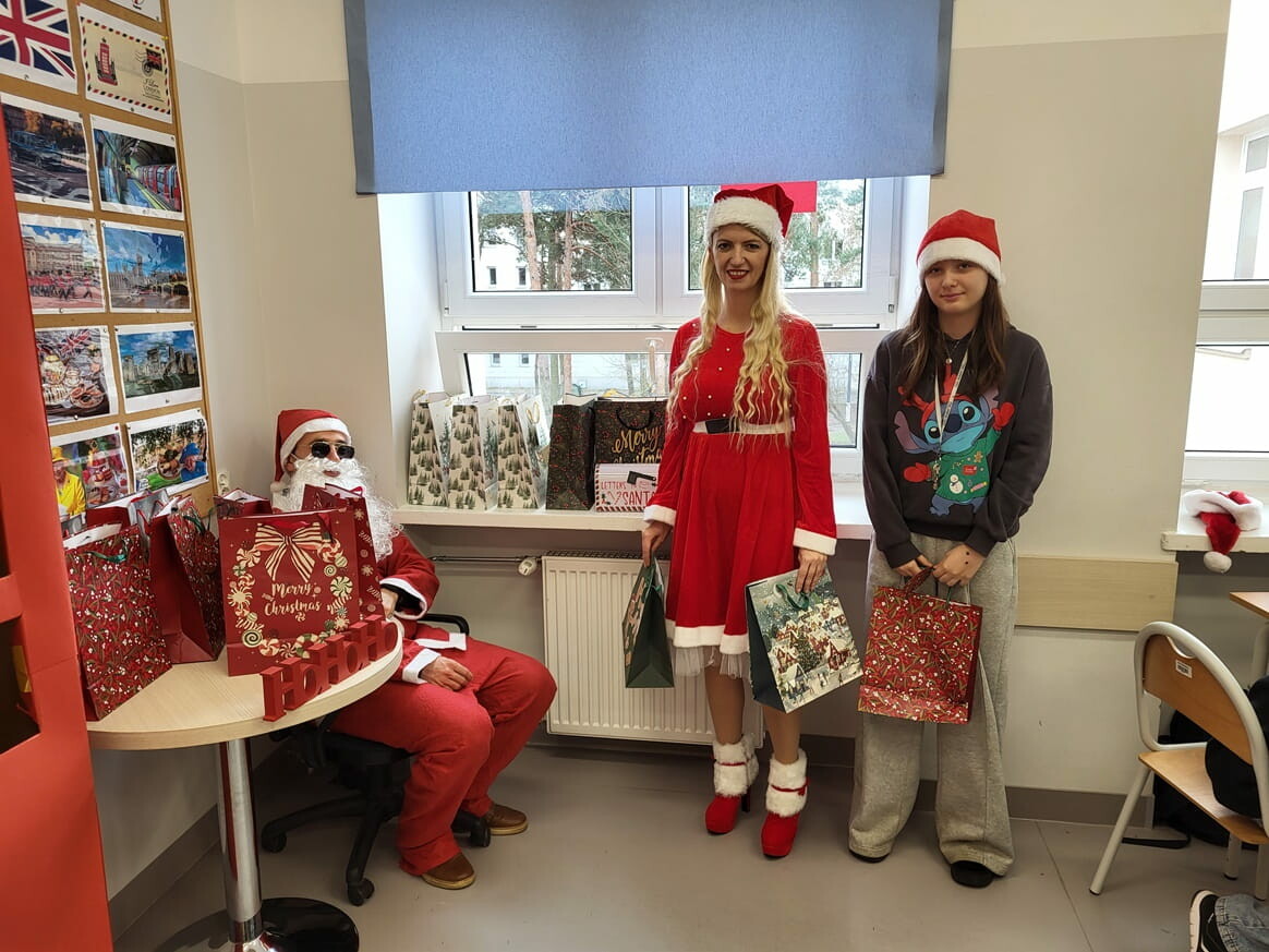 W naszej szkole obchodziliśmy wyjątkowy dzień Mikołajek, który przyniósł wiele emocji, uśmiechu i świątecznej atmosfery. Od samego rana w całym budynku dało się wyczuć podekscytowanie uczniów, a korytarze wypełniły się czerwonymi czapkami, dźwiękiem dzwoneczków i dobrym humorem. Uczniów odwiedził Święty Mikołaj, który wędrował od klasy do klasy, rozmawiał z dziećmi i wręczał im prezenty. Najmłodsi w podziękowaniu zaśpiewali piosenkę dla wyjątkowego gościa. Wizyta Mikołaja sprawiła, że cały dzień stał się prawdziwie świąteczny i niezapomniany.