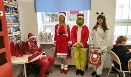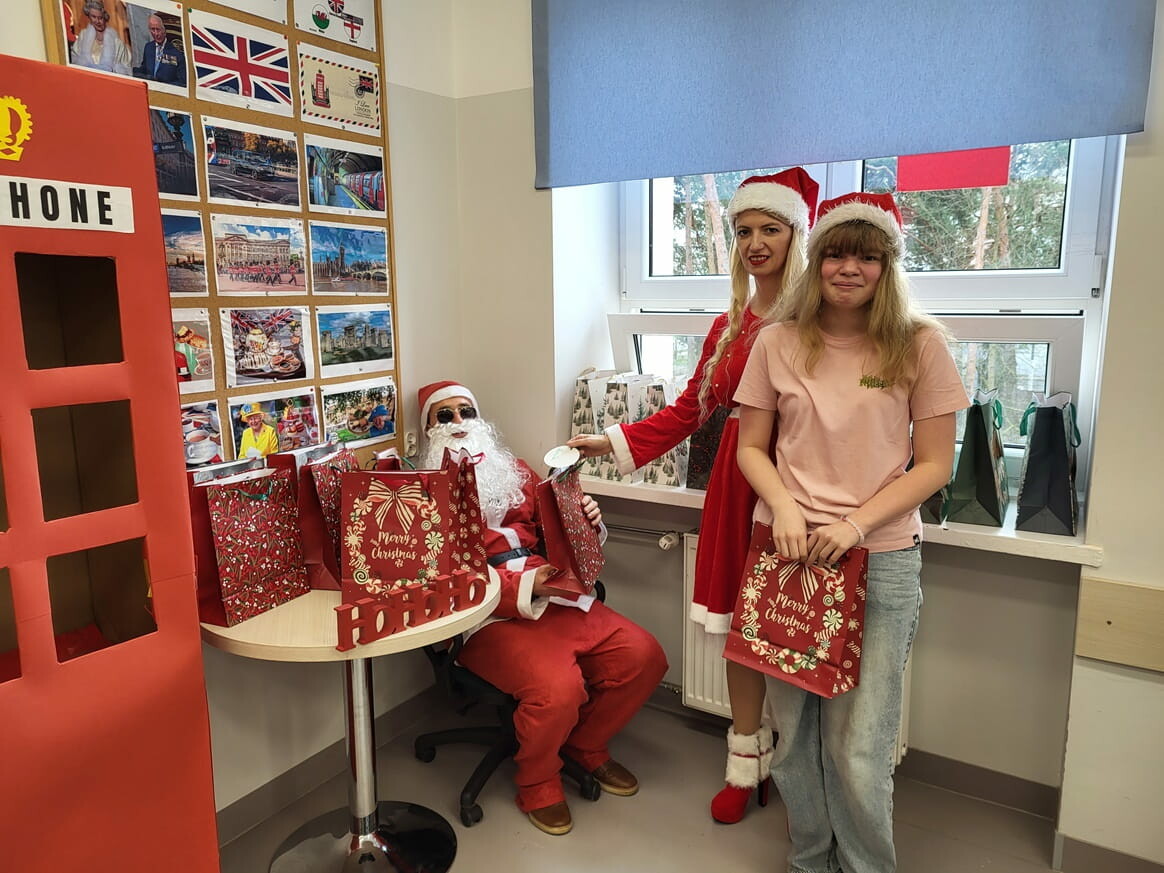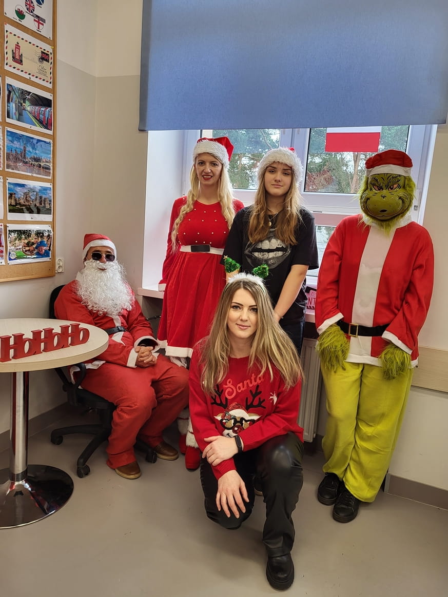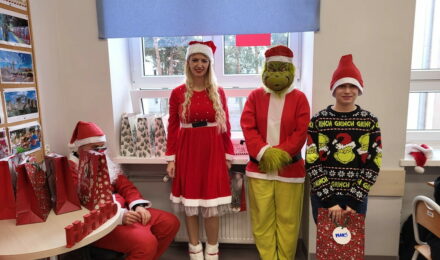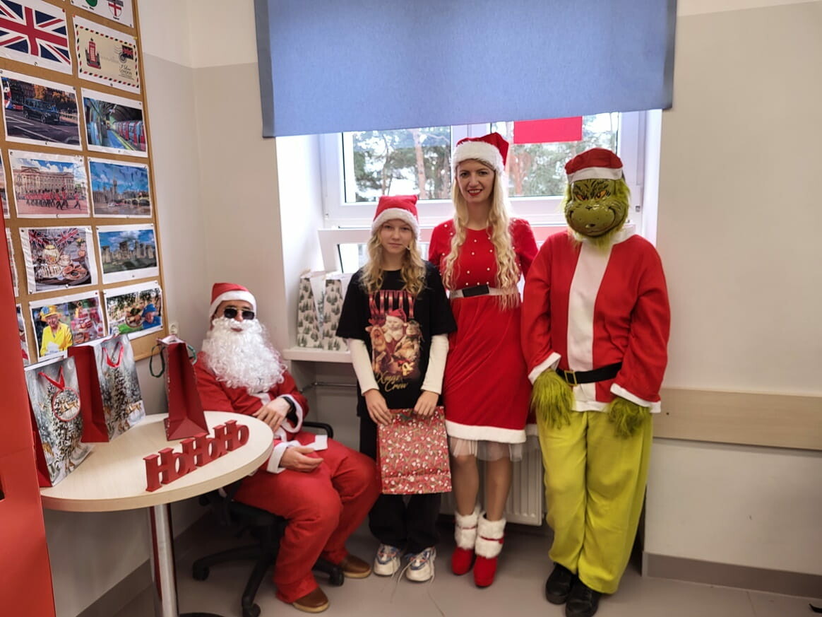 W naszej szkole obchodziliśmy wyjątkowy dzień Mikołajek, który przyniósł wiele emocji, uśmiechu i świątecznej atmosfery. Od samego rana w całym budynku dało się wyczuć podekscytowanie uczniów, a korytarze wypełniły się czerwonymi czapkami, dźwiękiem dzwoneczków i dobrym humorem. Uczniów odwiedził Święty Mikołaj, który wędrował od klasy do klasy, rozmawiał z dziećmi i wręczał im prezenty. Najmłodsi w podziękowaniu zaśpiewali piosenkę dla wyjątkowego gościa. Wizyta Mikołaja sprawiła, że cały dzień stał się prawdziwie świąteczny i niezapomniany.