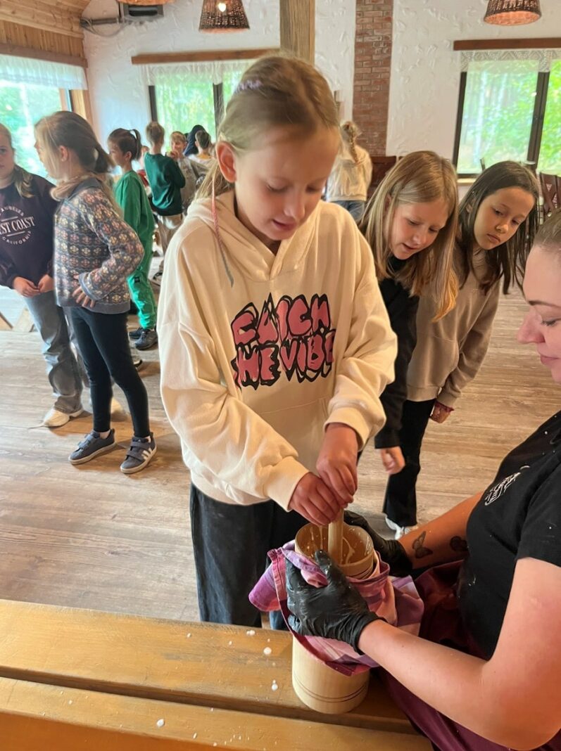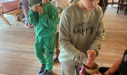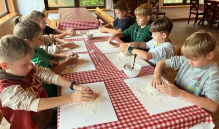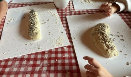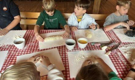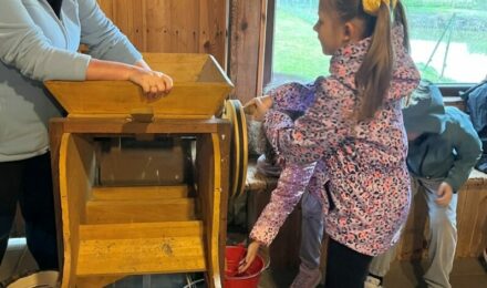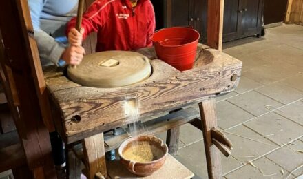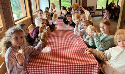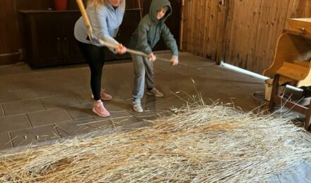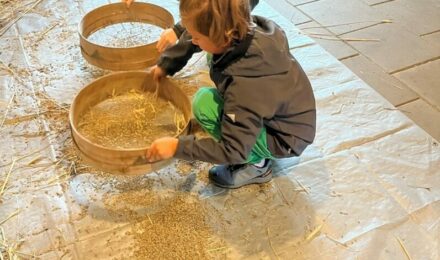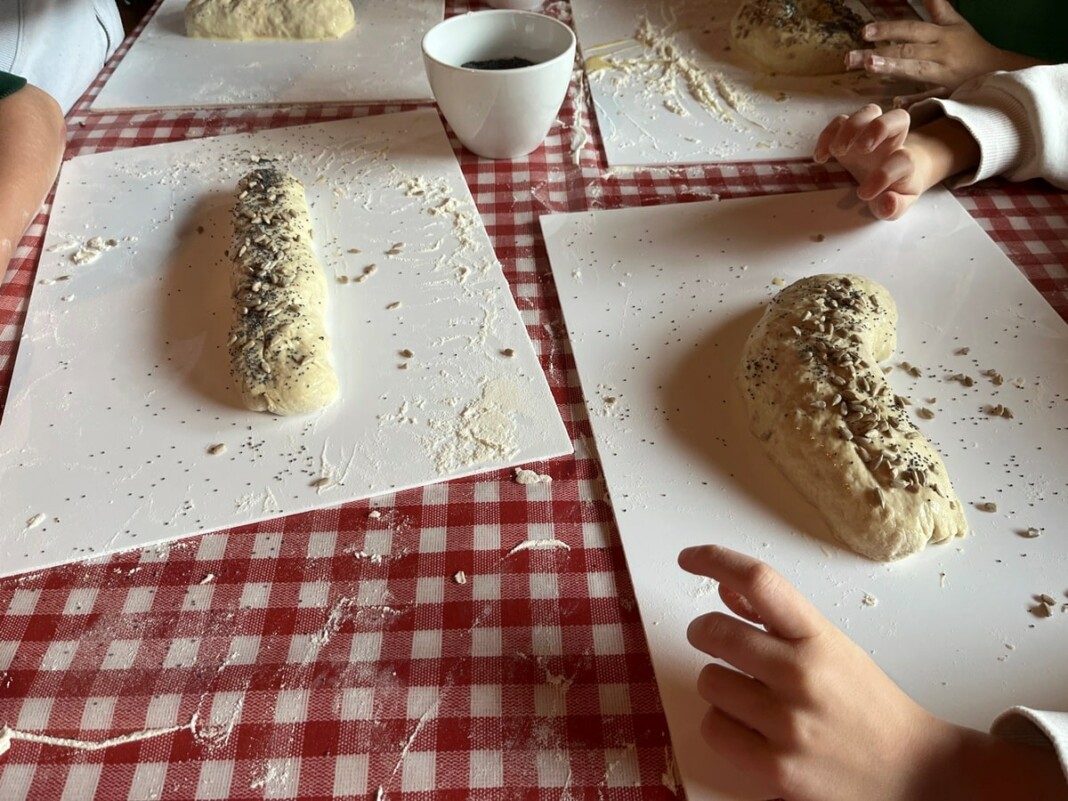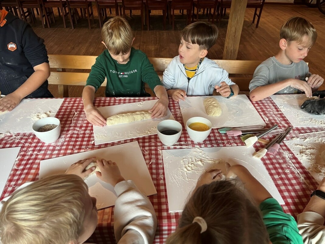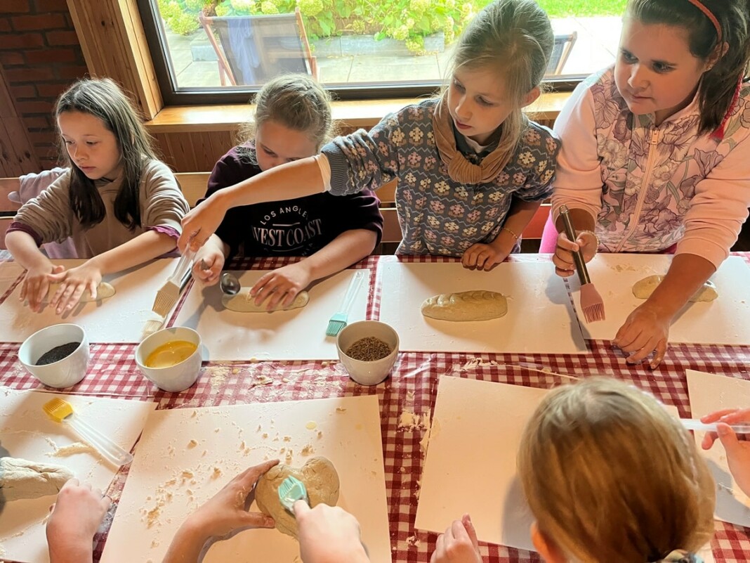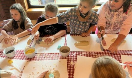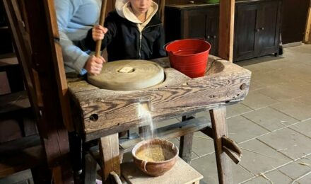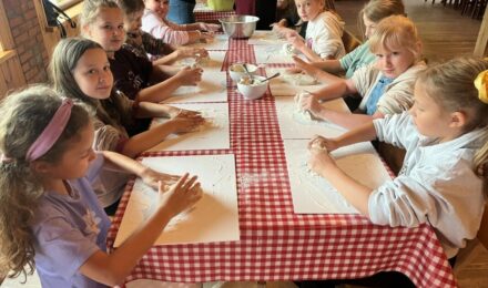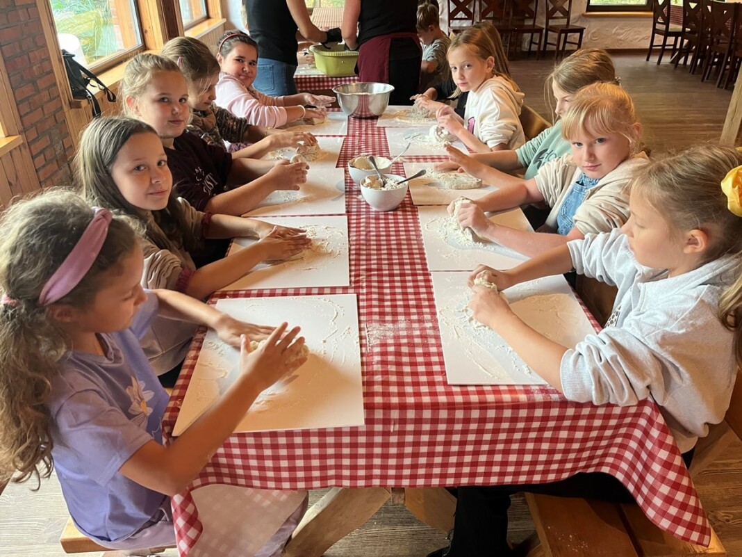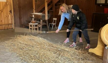 Podczas warsztatów „Od ziarenka do bochenka” dowiedzieliśmy się, jak rozpoznawać różne rodzaje zbóż oraz jakie mąki powstają z poszczególnych gatunków. Mieliśmy okazję samodzielnie spróbować młócenia cepem, przesiewania mąki i mielenia zboża w żarnach. Każdy uczestnik mógł także własnoręcznie uformować i upiec swój bochenek chleba, który po upieczeniu wspaniale pachniał i smakował jeszcze lepiej.