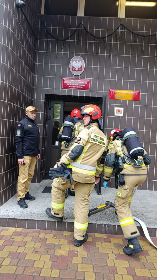 Po sygnale alarmowym wszyscy uczniowie wraz z nauczycielami sprawnie opuścili budynek szkoły i udali się na plac ewakuacyjny, gdzie szybko dokonano przeliczenia stanu liczbowego uczniów. Następnie cała społeczność szkolna przeszła do hali sportowej, by tam bezpiecznie poczekać na zakończenie działań straży pożarnej.