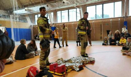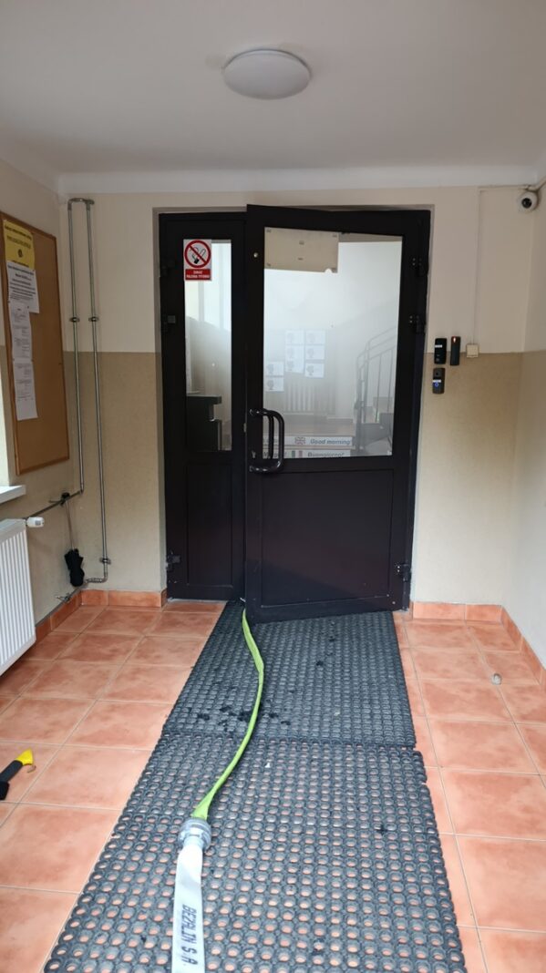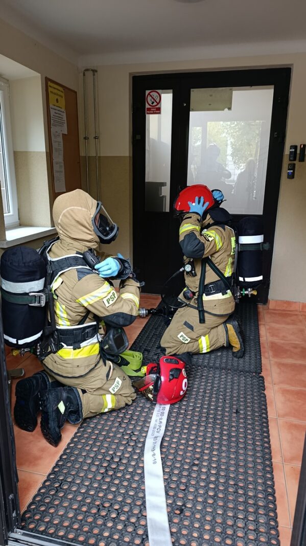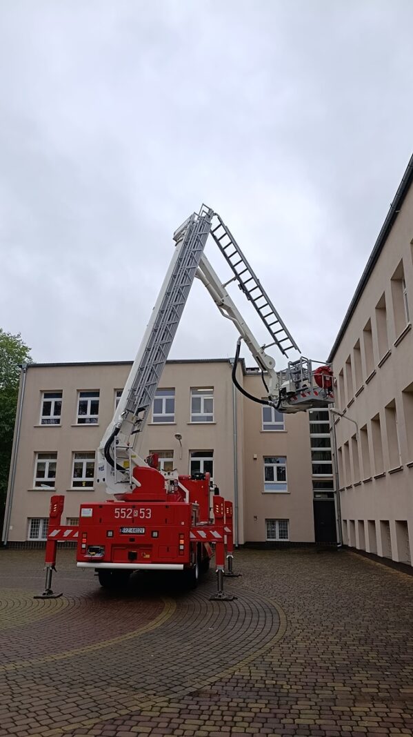 W dniu 10.10.2025 w naszej szkole została przeprowadzona próbna ewakuacja. Po ogłoszeniu alarmu przez panią dyrektor podjęto działania zgodnie z obowiązującymi procedurami bezpieczeństwa. Została wezwana straż pożarna, która pomogła w bezpiecznym „ugaszeniu pożaru” oraz w ocenie przebiegu całej akcji.
