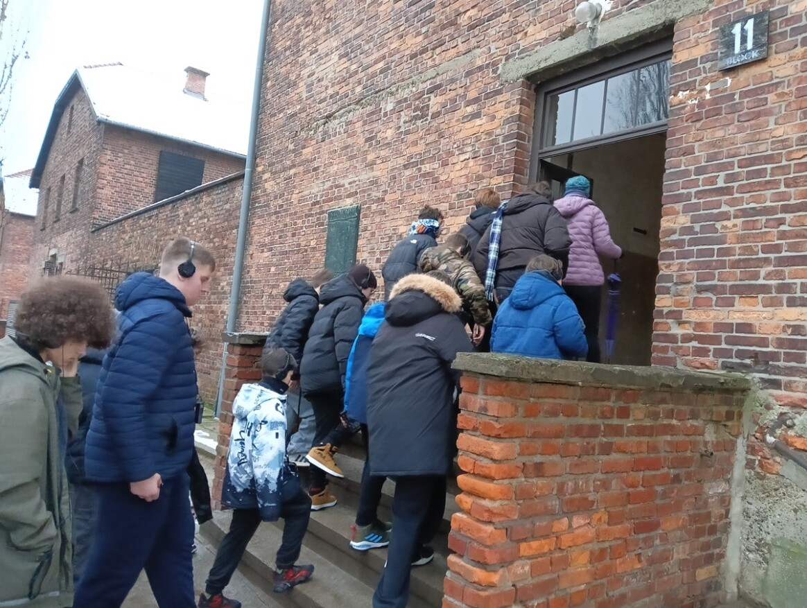 Prowadzeni przez edukatorów uczniowie przeszli pod napisem „Arbeit macht frei”. W ciszy i skupieniu przechodzili przez obozowe bloki, poznając straszną i bolesną historię wojenną. Portrety uwięzionych ludzi, ich rzeczy osobiste, Księga Imion, Blok 11 – nazywany Blokiem Śmierci, Ścianę Straceń, komorę gazową, krematorium i drugą część obozu – Brzezinkę.