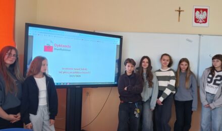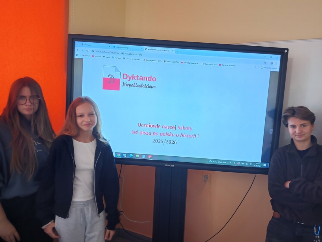 Tradycyjnie, 26 września nasi uczniowie pisali Dyktando Niepodległościowe. Mamy mały jubileusz, już od 5 lat bierzemy udział w tym wyjątkowym projekcie Stowarzyszenia Polonistów. Obecnie uczniowie z 1382 szkół z  Polski i zza granicy uczestniczą w rywalizacji na poprawną polszczyznę z historią w tle.  Nasze uczennice będą reprezentować szkołę i nasze miasto w 2 kategoriach wiekowych: klasy 4 –  6 i klasy 7 – 8 na etapie wojewódzkim. Dziękujemy wszystkim, którzy przystąpili do pisania i czekamy na wyjazd do Wiśniowej dla najlepszych.
