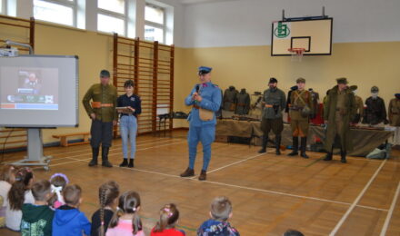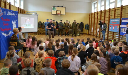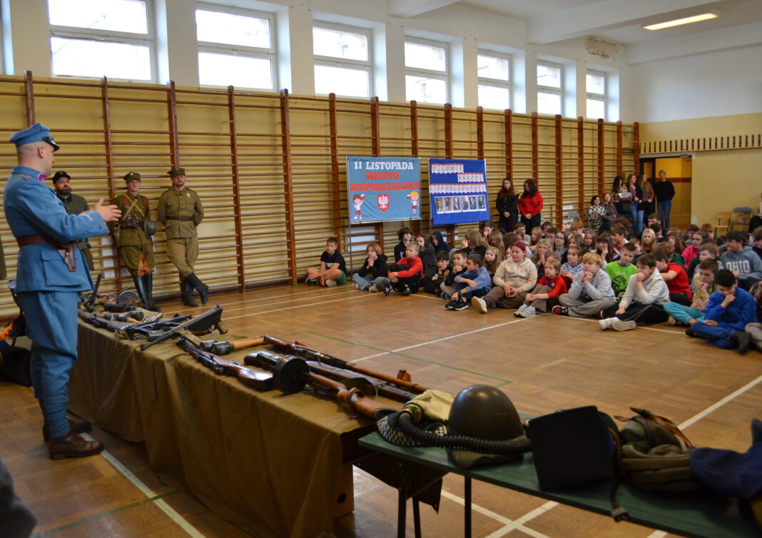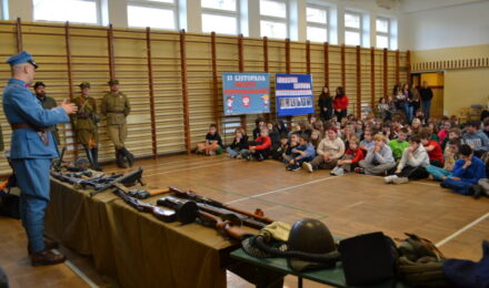 Wydarzeniu towarzyszyła żywa lekcja historii poświęcona obchodom Święta Niepodległości – 11 listopada. Uczniowie mieli okazję zobaczyć z bliska elementy wyposażenia żołnierzy oraz poznać realia walk o niepodległość Polski.