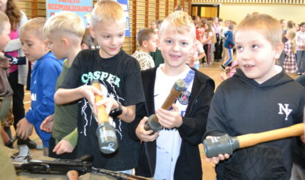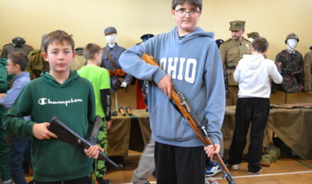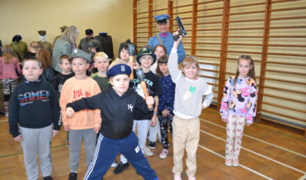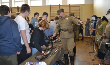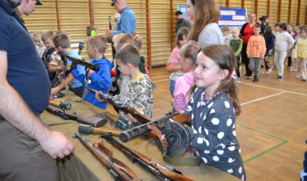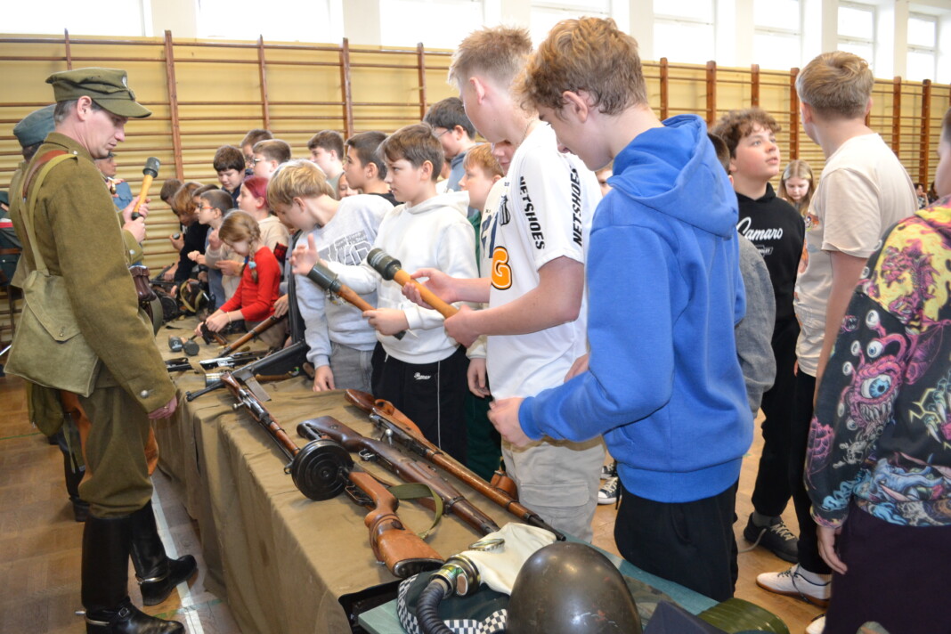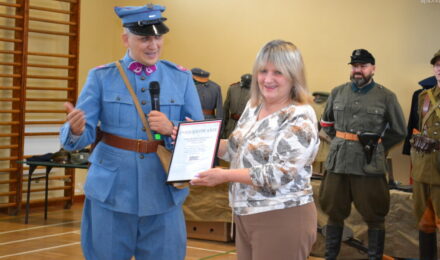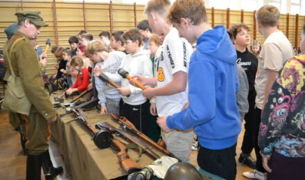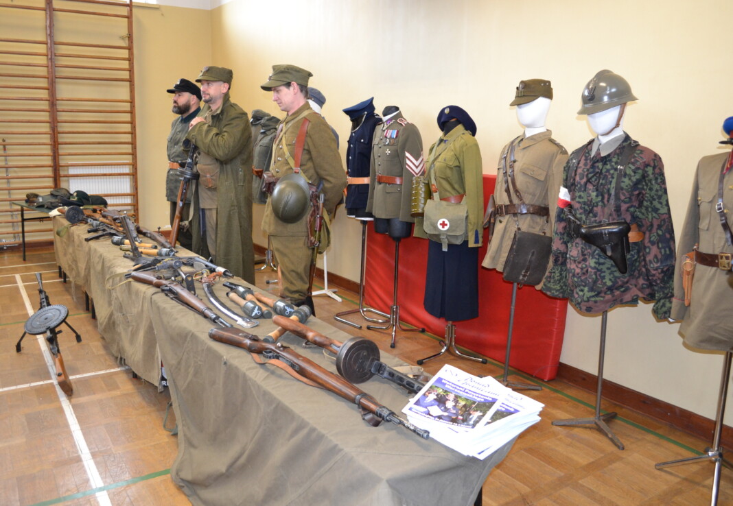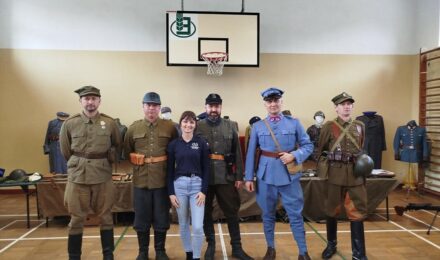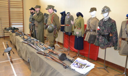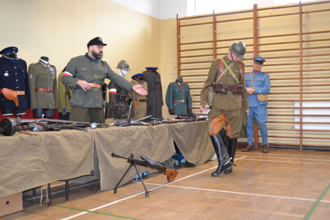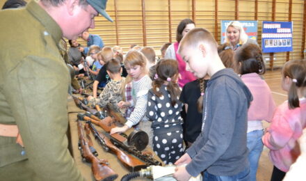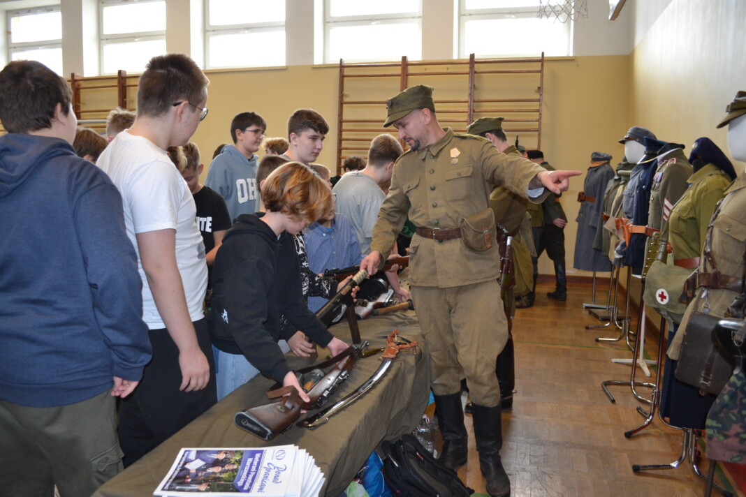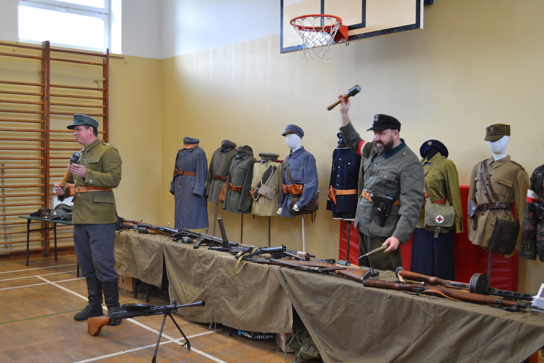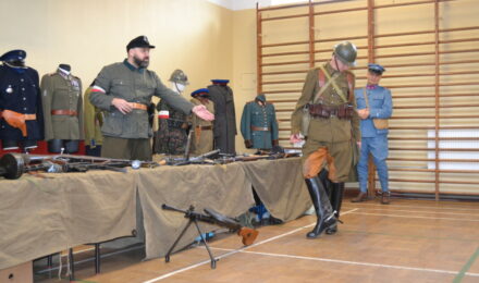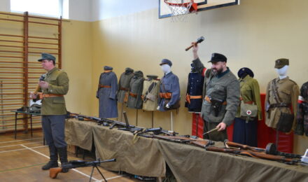 Członkowie Stowarzyszenia, a tym samym miłośnicy historii, zaprezentowali uczniom naszej szkoły umundurowanie z okresu 1914–1945, a także wystawę broni historycznej.