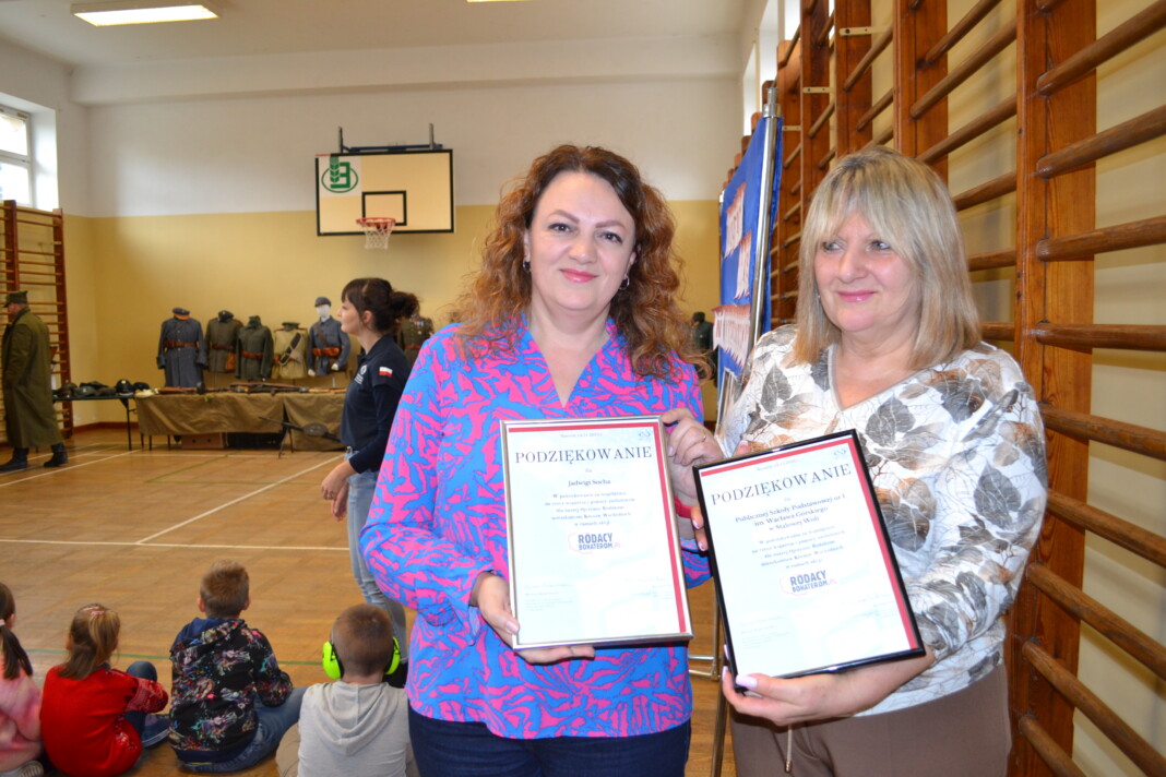 Prezes Stowarzyszenia pan Krystian Fila, za wieloletnią współpracę i zaangażowanie szkoły w akcję „Rodacy Bohaterom” złożył na ręce Pani Dyrektor Publicznej Szkoły Podstawowej nr 1 im. Wacława Górskiego w Stalowej Woli Małgorzacie Kalinka oraz pani Jadwidze Socha najszczersze podziękowania.