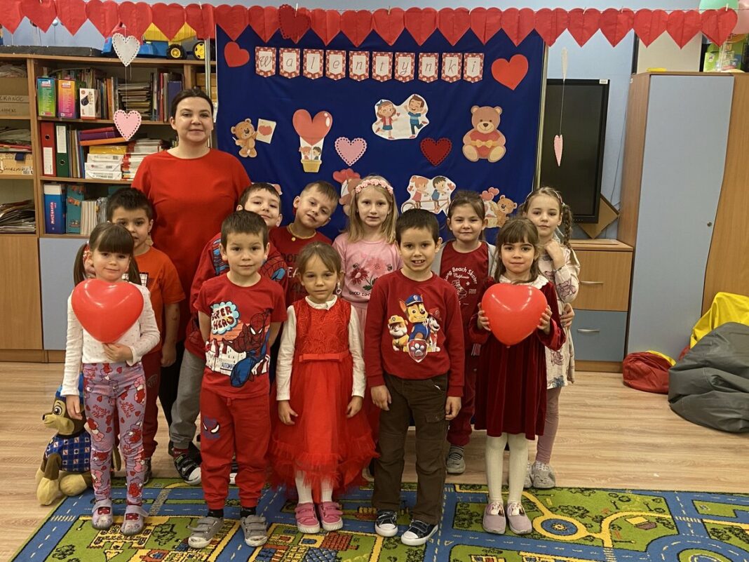Dnia 14 lutego w naszym oddziale przedszkolnym obchodziliśmy Walentynki. Dzieci w tym dniu przyszły ubrane na czerwono. Przedszkolaki miały okazję wypowiedzieć się na temat przyjaźni i miłości. Wykonały serduszka, które mogły wręczyć swoim kolegą lub koleżanką oraz wykonały pamiątkowe zdjęcia przy tablicy. Na zakończenie dzieci otrzymały upominek, zorganizowany przez rodziców. Był to dzień pełen radości, dobrych słów oraz życzliwości.