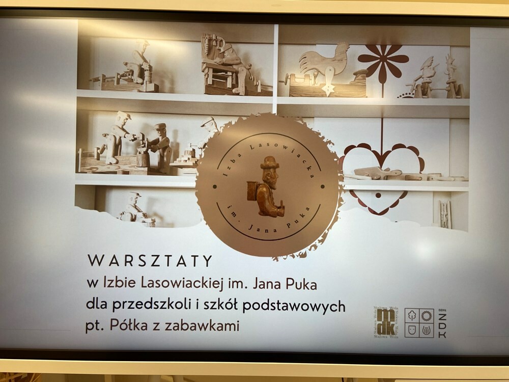 7 maja dzieci z oddziału przedszkolnego miały przyjemność uczestniczenia w bardzo ciekawych warsztatach pt. „Półka z zabawkami”, które odbyły się w Izbie Lasowiackiej im. Jana Puka w Miejskim Domu Kultury w Stalowej Woli.