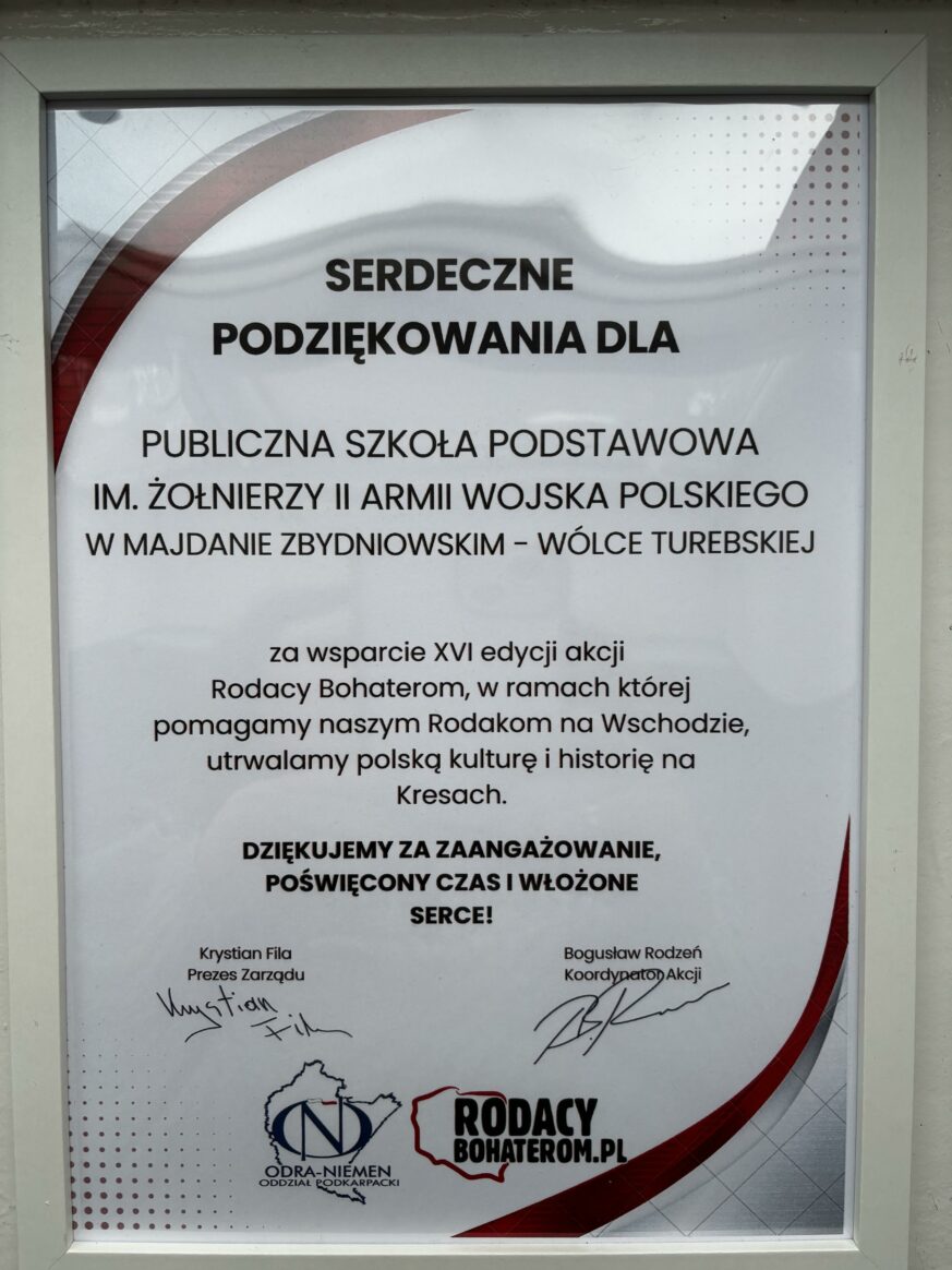 Serdecznie dziękujemy wszystkim, którzy wsparli akcję „Rodacy Bohaterom”, mającą na celu pomoc Polakom mieszkającym na Kresach. Okazane zaangażowanie i otwartość na potrzeby innych są dla nas bardzo ważne.