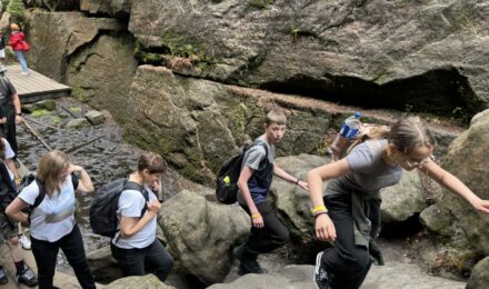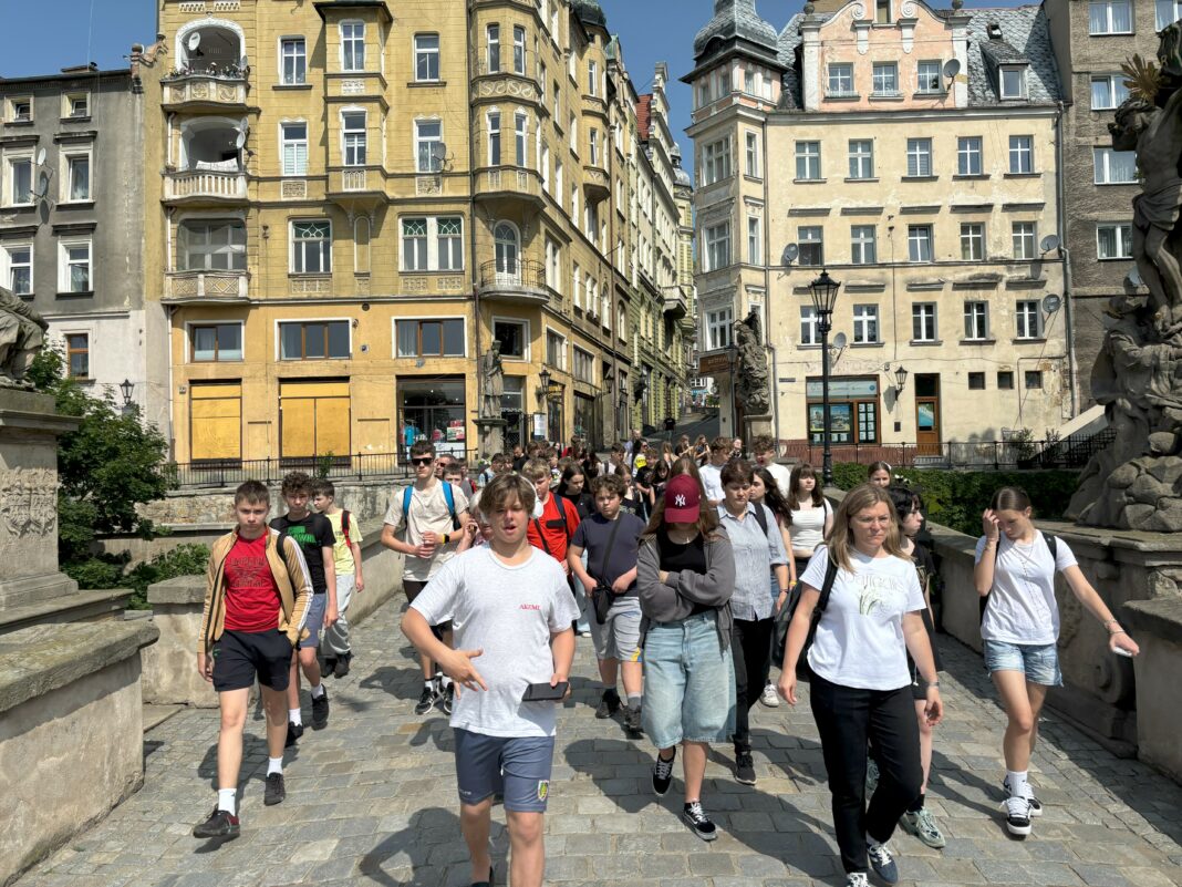 Najważniejszym punktem wycieczki oczywiście były górskie wędrówki. We wtorek wyruszyliśmy z przewodnikiem na Szczeliniec Wielki – najwyższy szczyt Gór Stołowych, a następnie przeszliśmy przez fascynujący labirynt Błędnych Skał. To był dzień pełen wysiłku, ale także zachwytu nad niezwykłymi formacjami skalnymi i niezapomnianych przejść przez wąskie szczeliny, które dostarczyły wszystkim mnóstwo zabawy.